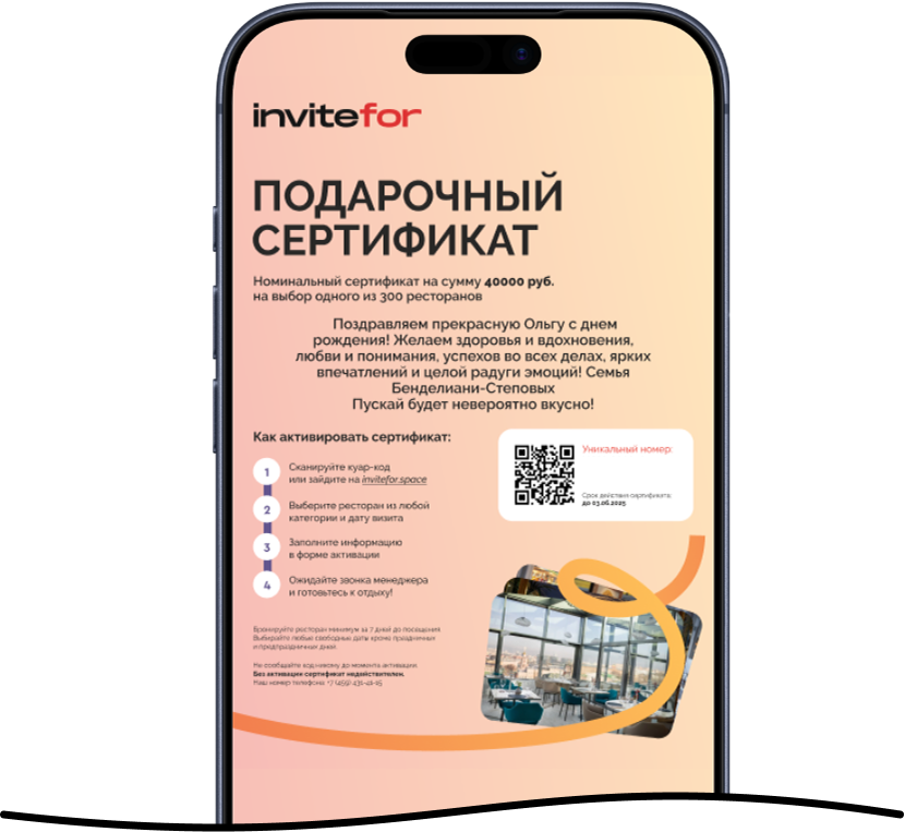 — Депозит на посещение выбранного 1 ресторана на 1 вечер на 2 персоны